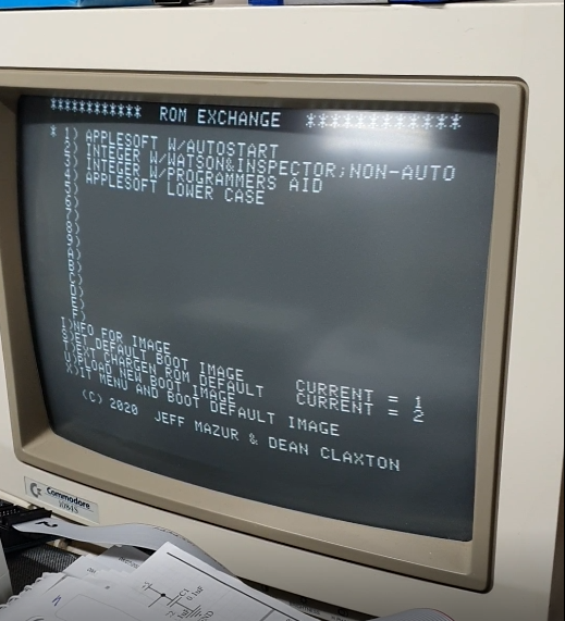 Here's the on-screen boot menu - this is displayed at initial power up, and you can adjust the amount of time it is displayed before it boots the default ROM. The delay can be 0 seconds, however you'd then need to use the disk utility to change anything. Yes, there is a disk utility, which is essentially a copy of the boot menu code that can be BRUN. While the menu is displayed, you can press a key 1-F to immediately boot that ROM image :