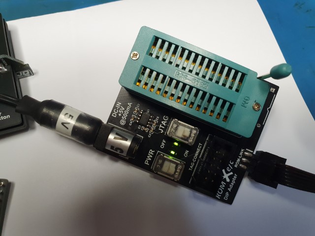 ROMXe only needs the one socket when programming - the EF adapter part of the board just hangs out there.