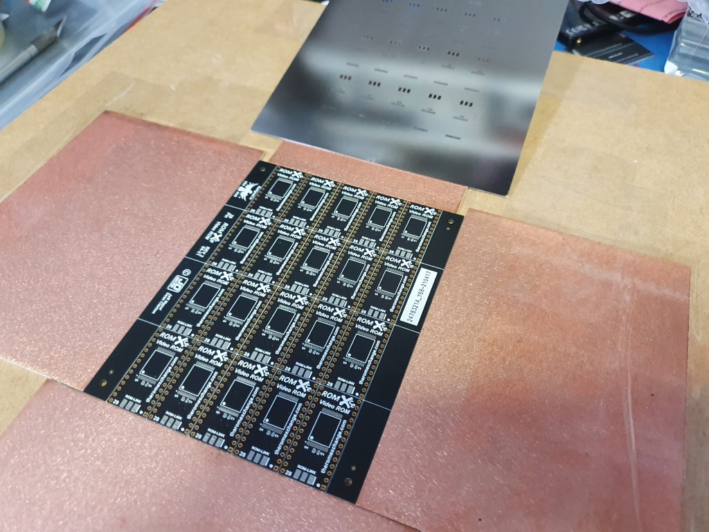 Once reflow is complete the process is repeated for the rear of the board if it has components on both sides (ROMXc does, Video ROM doesn't).