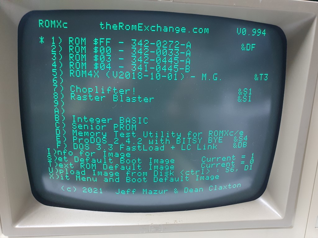 Below is is the production flash image that will ship with the units. We've made a minor change to the DOS 3.3 language card link since - its revised to &LB. So if you link a ROM image to the DOS image (as per ROM image 1 below), it will not only boot DOS instantly, but will also load Integer BASIC into the language card. How cool is that!