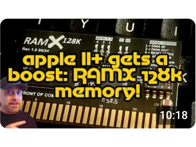 RAMX128K is fully compatible with the Saturn 128K RAM card and is therefore also fully compatible with software designed to run with Apple’s Language Card (PASCAL, FORTRAN, etc), Microsoft’s RamCard and Z80 Softcard (CP/M, COBOL-80, FORTRAN-80, etc) and other RAM cards that follow the same memory bank switching scheme.